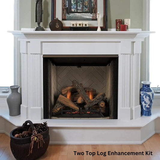 Double-flame ventless gas logs offer a more dramatic and realistic fire experience. They feature two separate flame patterns, creating a taller, more dynamic fire display. These logs often come with variable high-low flame adjustment, allowing you to control the intensity of your fire. With their realistic appearance and efficient heat output, double-flame logs are great for those who want the look of a roaring fire without the maintenance of real wood. If your fireplace requires vented logs, we have a vented logs collection as well.