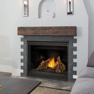 The Ascent™ 42 gas fireplace features a Split Oak Log set with a traditional look and feel. It is a clean-faced fireplace that maximizes the viewing area so the realistic flames can be enjoyed to their fullest. The dual flame pan burner technology creates a double layer of flames for even more depth. No power? No problem! With the added assurance of a dependable battery back-up system, you can bask in continuous comfort, even during power outages. With the approved safety barrier, the Ascent™ meets tomorrow's safety standards today. Customize the look of this gorgeous fireplace with a selection of fronts, brick panels, trims, and optional media kits like the beach fire and mineral rock kit to lend a more unique look. This unit is ideal for builders and homeowners alike, featuring a shallow depth, which allows for versatile installations where space is at a premium. This means any room can have a beautiful gas fireplace.