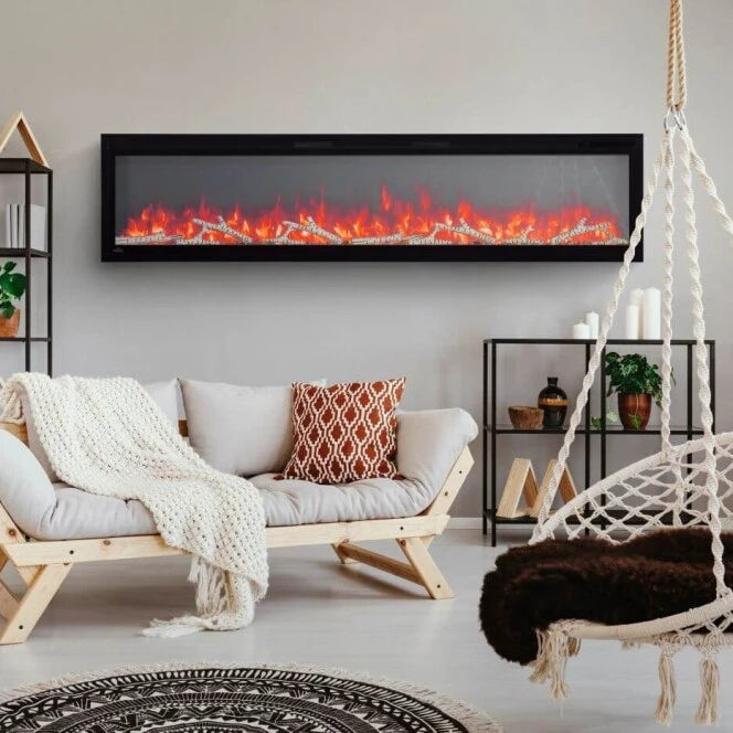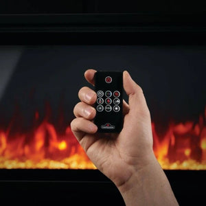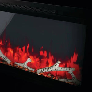 Completely transform any space with the Entice 36 Wall-Hanging Electric Fireplace. The full flame pattern creates a striking visual impact, especially with the ability to change the flame color and ember bed to match your mood and style. Have full control over your fireplace with the remote, easily adjusting the flame intensity, colors, ember bed color, brightness, blower, heat output, and timer. Ready to go right out of the box, no gas fitter required, just hang the Entice on the wall and plug in. The shallow depth means that this fireplace doesn't intrude into your living space. A reflective rear panel expands the depth of the flames for a more immersive experience without taking up physical space in your room. For a more seamless look, this electric fireplace can be fully or partially recessed into a wall. See the fireplace and not the frame with a minimalist, nearly frameless finish. Complete any room with an easy-to-install Entice 36 Wall-Hanging Electric Fireplace.