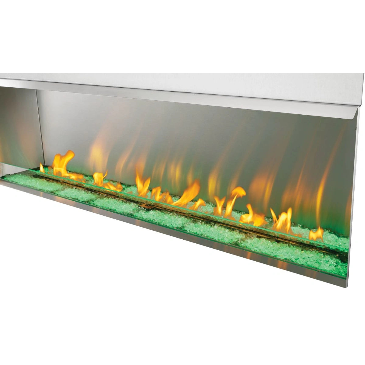 It's clean-face design features a 20" viewing height that highlights the flame and media. The firebox and burners are built with robust 304 stainless steel ensuring this fireplace provides you with lasting durability. Customize with a range of media options like glass embers, crystals, driftwood, oak, and woodland kits for a personal touch. Plus, select from a selection of LED colors to illuminate the ember bed and wind guard for even more customization.