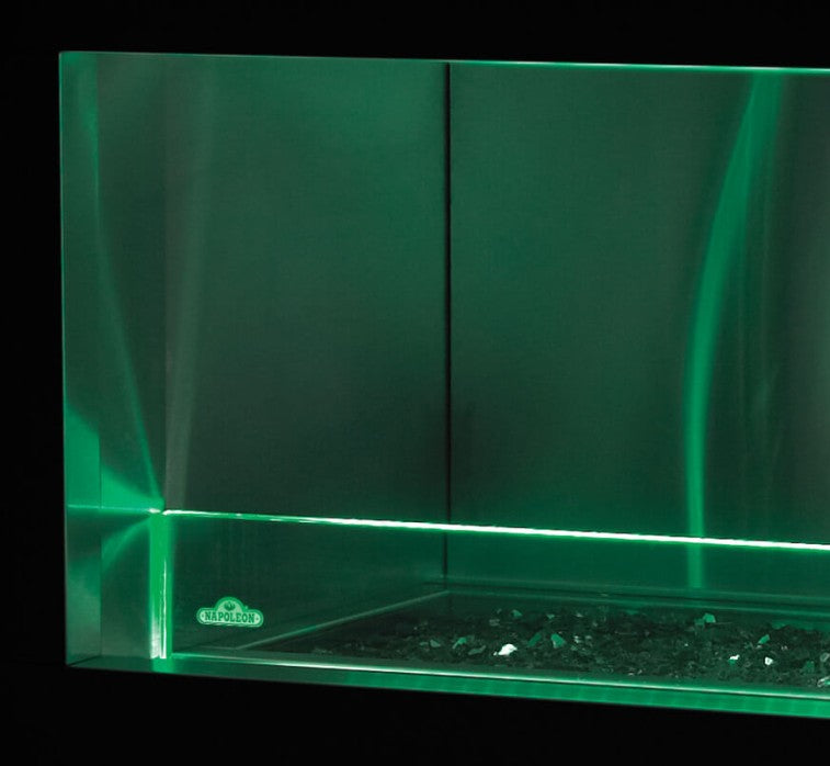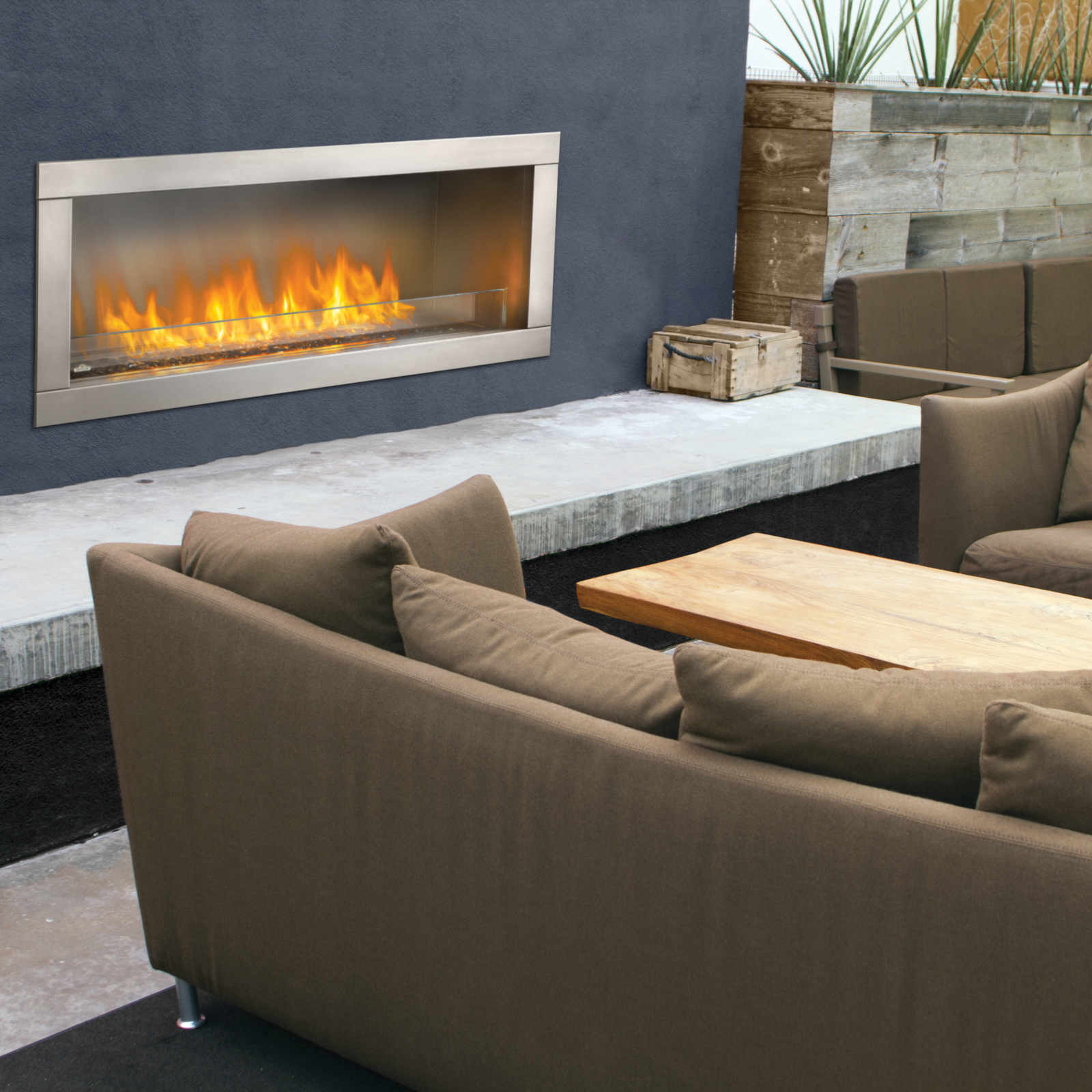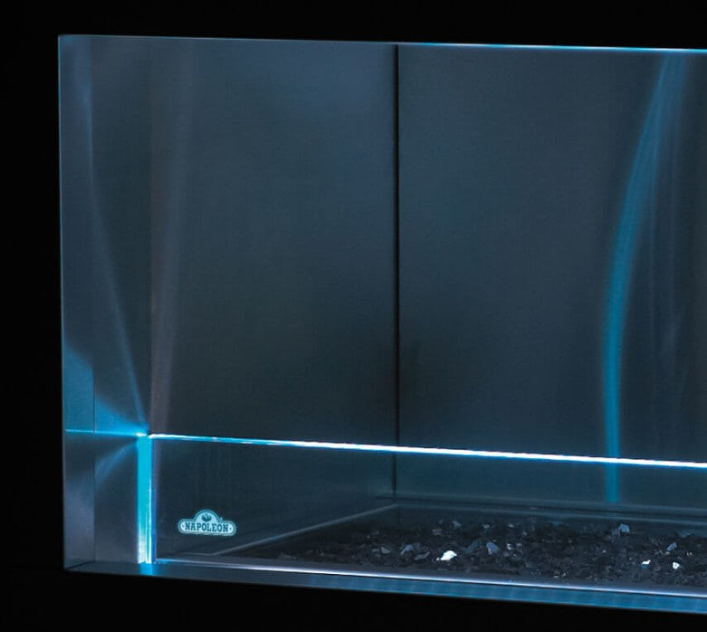 The Napoleon Galaxy™ Outdoor Gas Fireplace is truly unique with a linear, sleek modern design adding to the excitement of outdoor living. Napoleon's Galaxy™ outdoor linear gas fireplace is also available as a See Thru (GSS48STE) unit and is constructed of weather resistant brushed stainless steel for maximum outdoor durability. The Galaxy™ See Thru features a glass wind deflector to ensure operation in windy conditions as well as a safety valve that turns the gas supply off if the flame goes out.