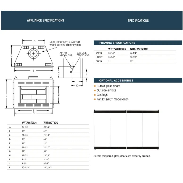 Though surprisingly economical, the WRT/WCT2000 fireplaces present a “big box” look with an oversized brick to brick opening. Available in clean-face and circulating models, the fireplace comes standard with textured, powder coat finish and full smooth white refractory brick liner. 8″ pipe makes for easy installation.