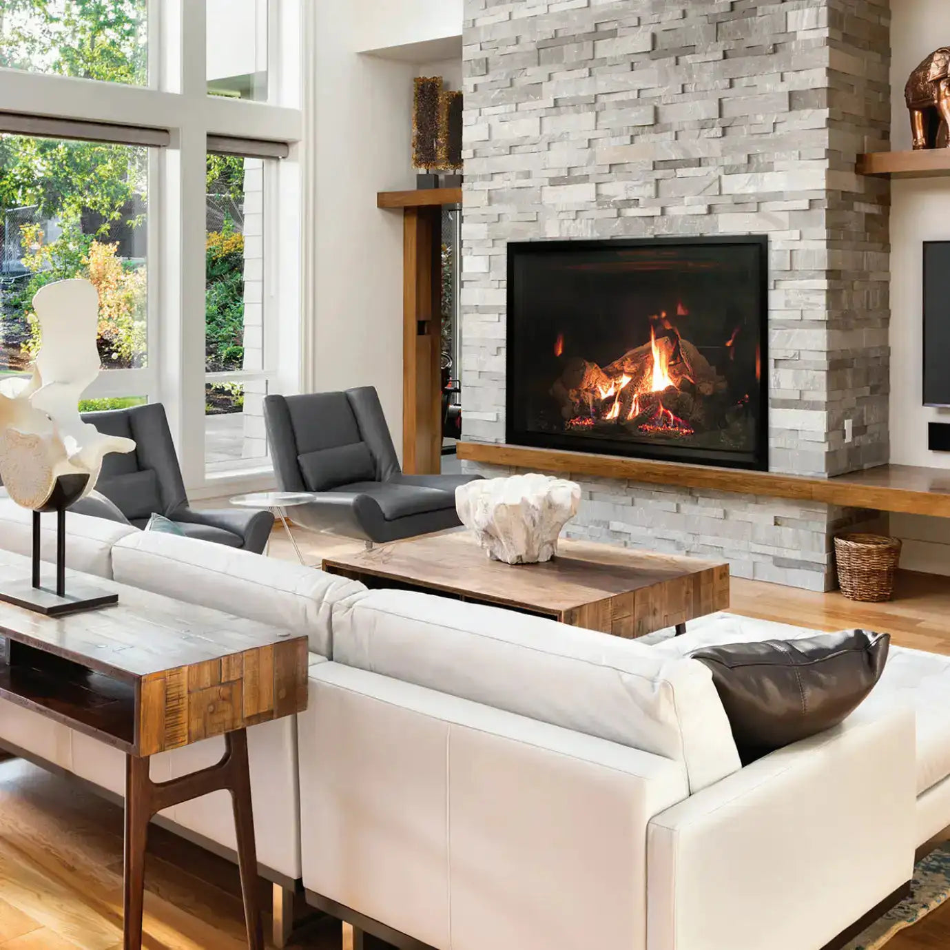 Turn Two Rooms Into One Stunning Focal Point With a See-Through Fireplace!...